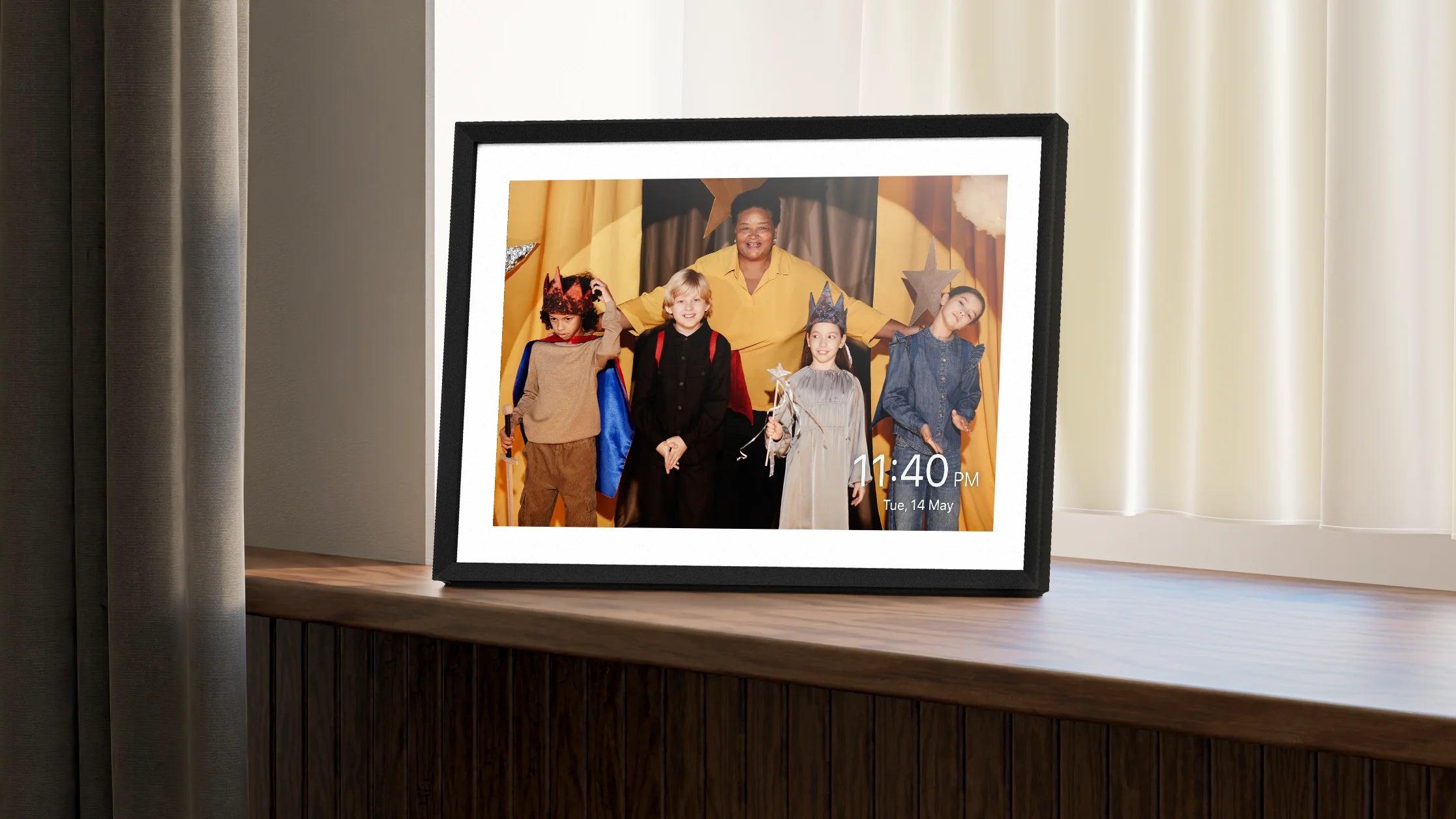 The built-in motion sensor activates the frame when you’re nearby and puts it to sleep when you leave the room. Your photos are always ready when you are, without wasting energy.