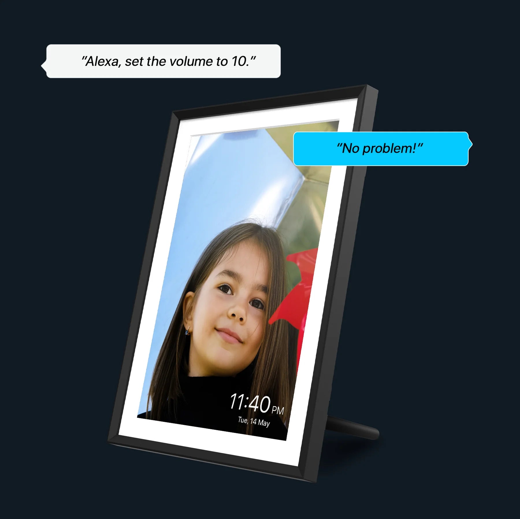 Alexa voice commands to adjust volume, play, pause, page turning, etc., making it simple for people of all ages to interact with frames.