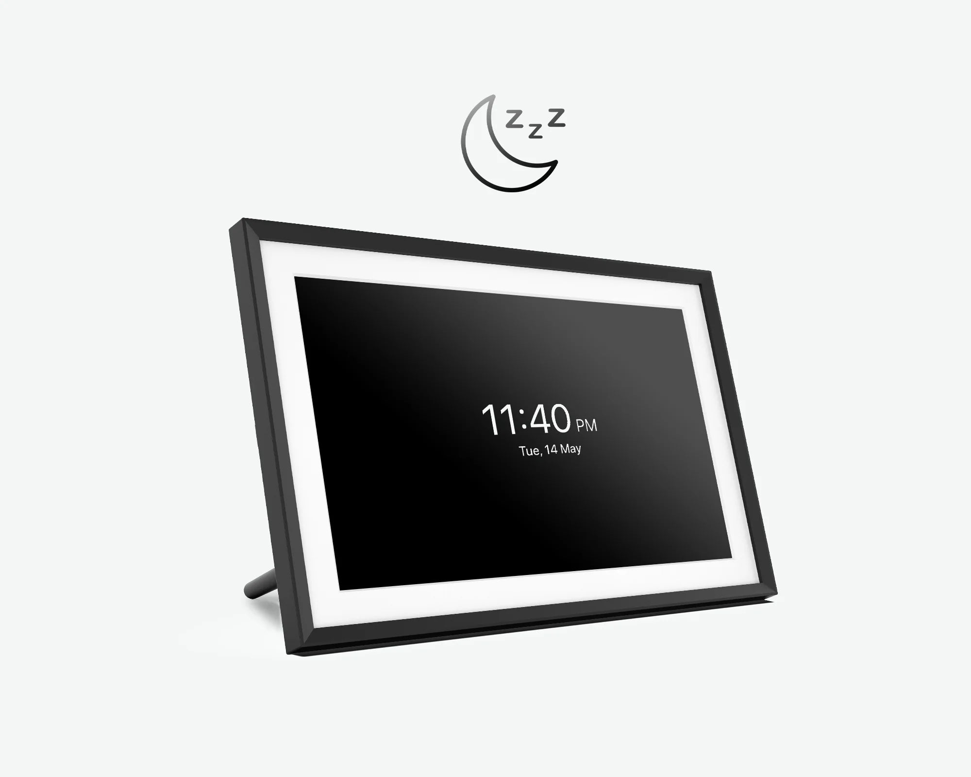Set time for your frame to automatically power off, without the need of manual operation everyday. During sleep mode, the frame displays a sleek clock for easy time-checking, without having to wake up the display fully.