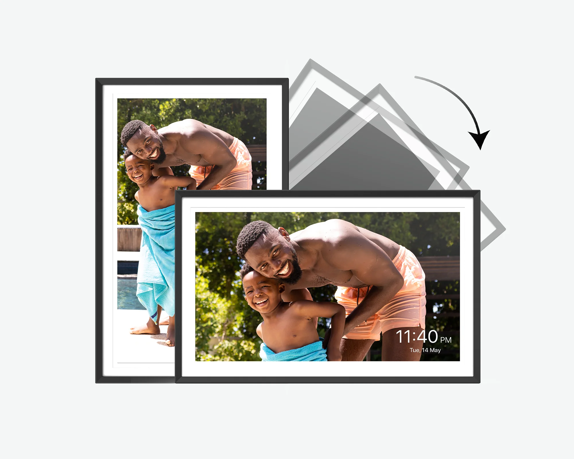 The built-in motion sensor activates the frame when you’re nearby and puts it to sleep when you leave the room. Your photos are always ready when you are, without wasting energy.