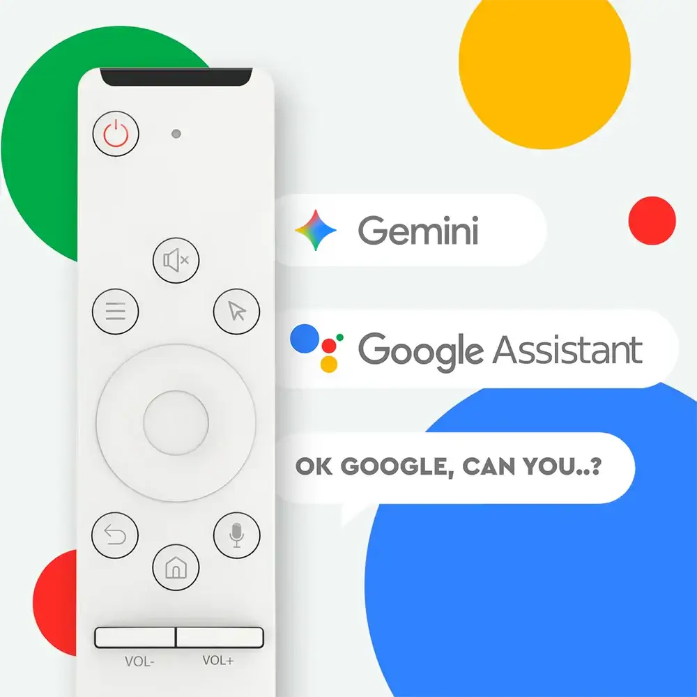 Three modes to control the screen: remote control, touch, and voice interaction. Choose your preferred way based on your habits and comfort. Press and hold the voice button to activate Google Assistant or Gemini AI for instant voice commands, smart suggestions, and natural conversations.