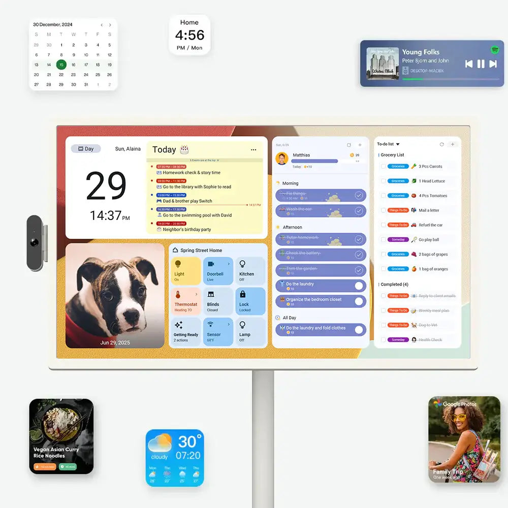 View your daily schedule, weather, to-dos, and smart home info all in one place. The built-in Dashboard syncs seamlessly with the Apolosign Calendar, keeping your family’s routines and reminders updated across every device.