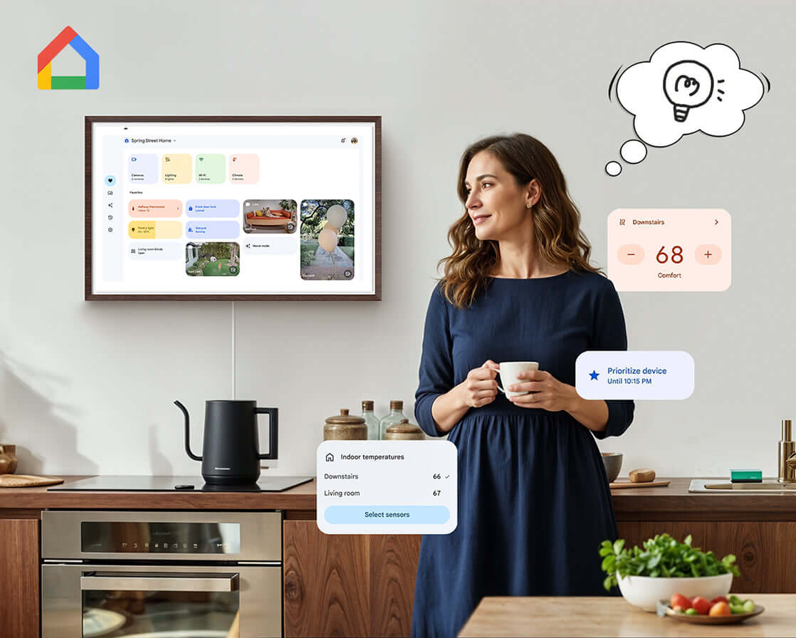 - Say “Hey Google” for voice control and Gemini AI chat.