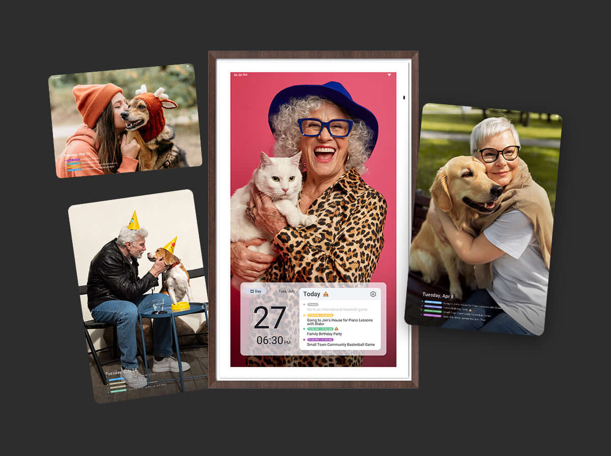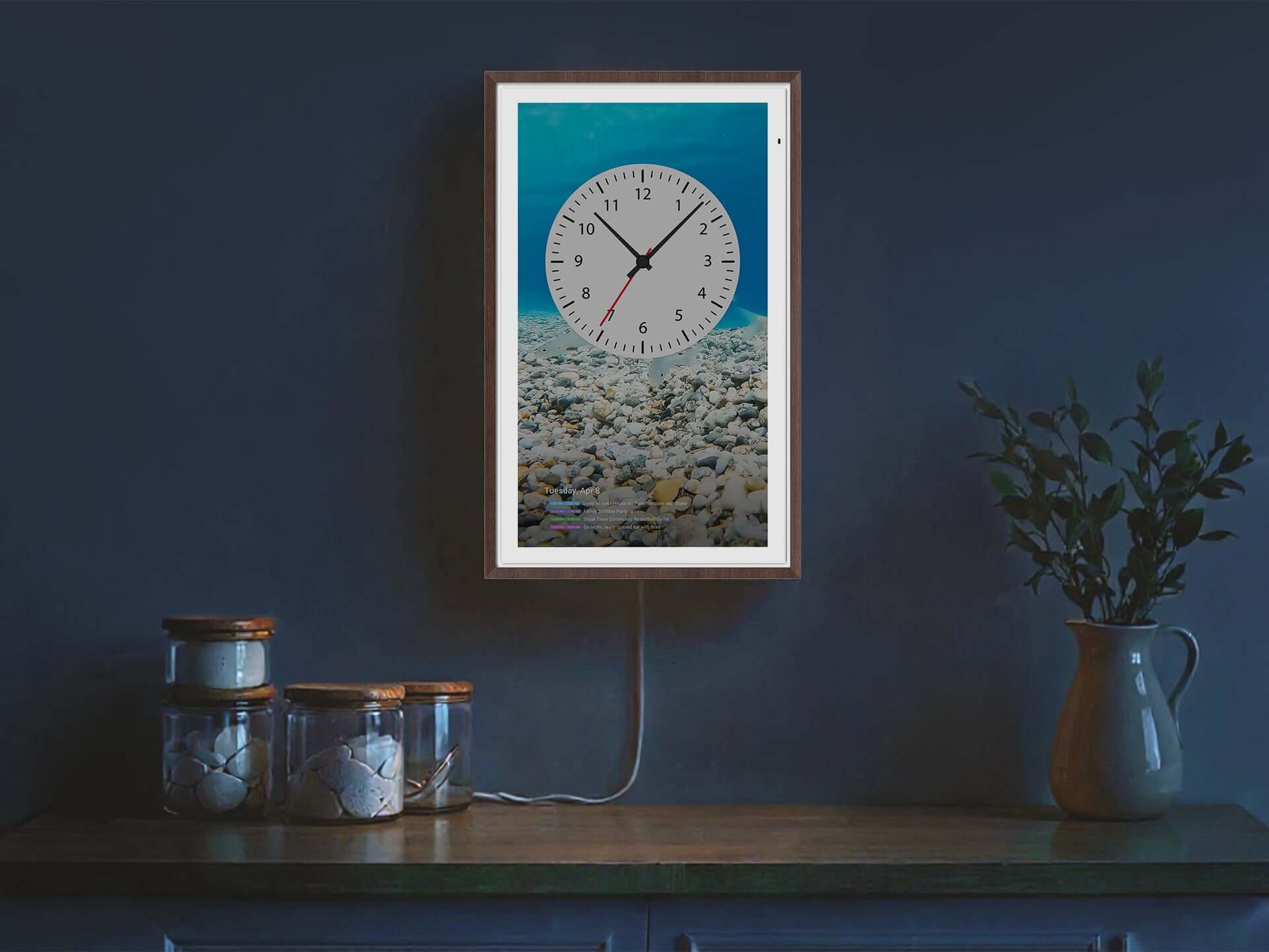 - Photo Frame with calendar, clock, and Google Photos no subscription.