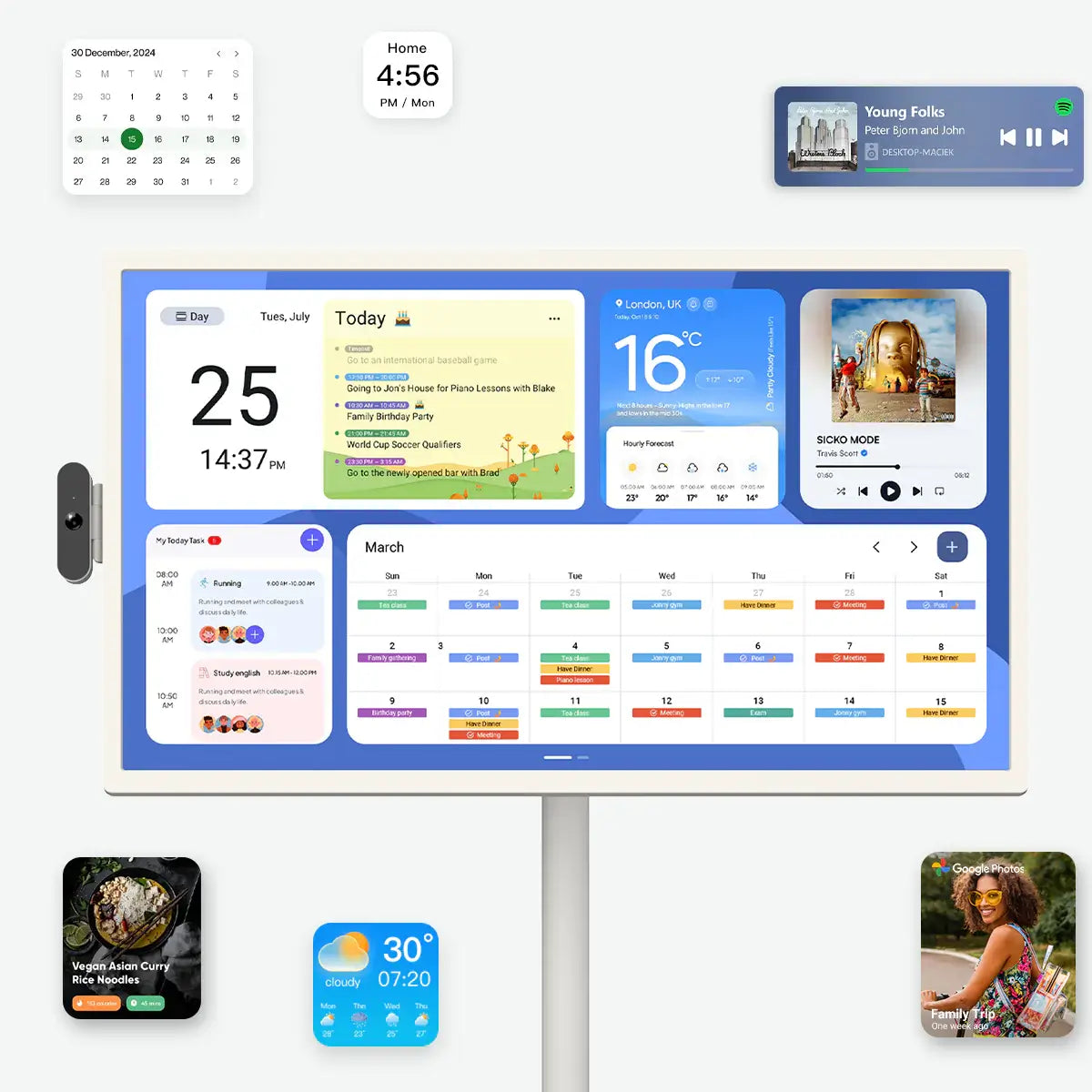 With built-in calendar display and customizable widgets, you can view your daily schedule, weather updates, to-do lists, smart home controls, and more—all from your dashboard.