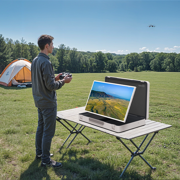 Take Packgo outdoors and pair it with your drone, enjoy real-time transmission on a larger, smoother screen for a seamless fly-and-watch experience.