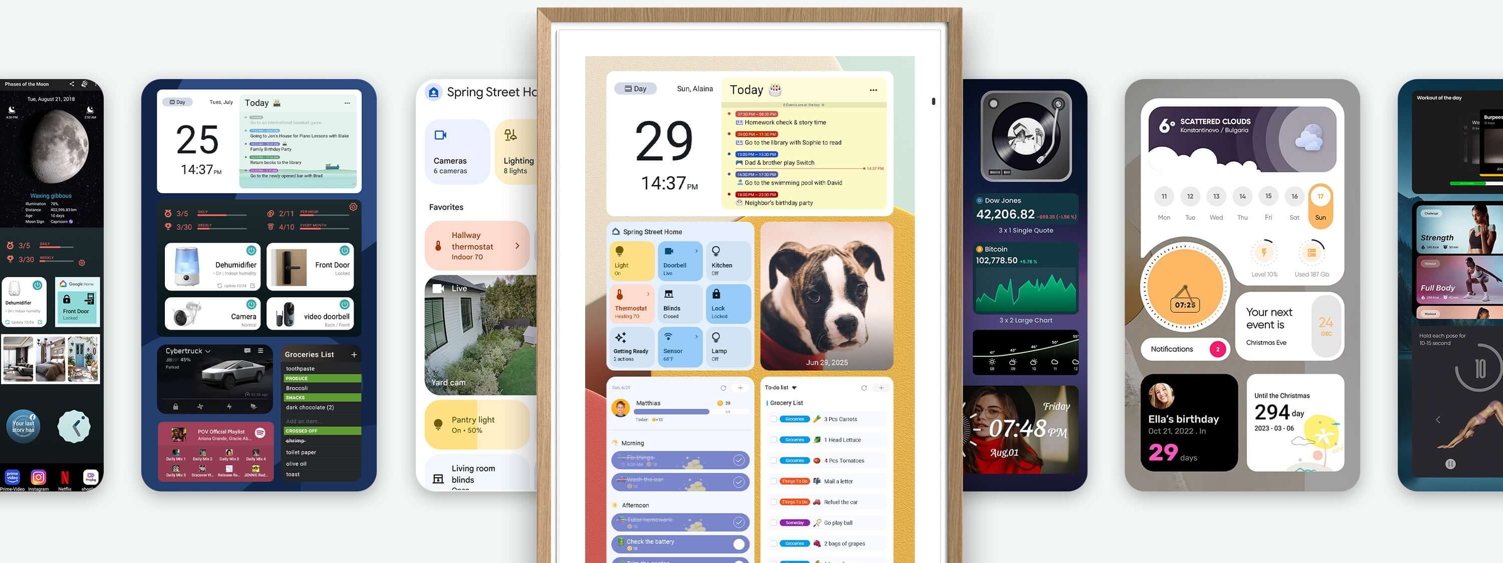 Add and arrange the widgets you need calendar, chores, meals, weather, doorbell, music controls, stocks, and more.