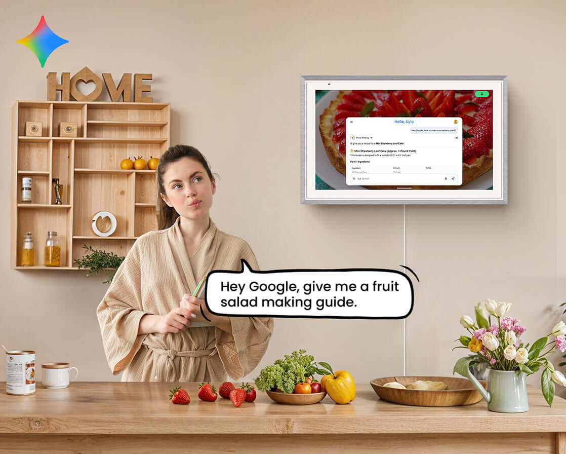 - Say “Hey Google” for voice control and Gemini AI chat.